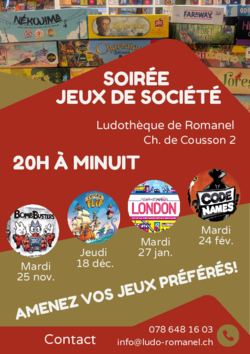 Plus d'infos : 078 648 16 03 - info@ludo-romanel.ch